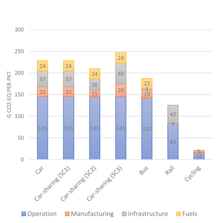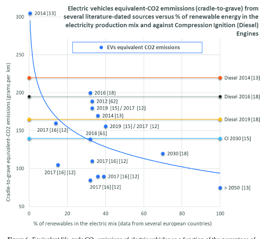 Méfiez-vous des fausses bonnes idées, comme la voiture électrique qui nécessite à peine moins 50% d’énergie à construire (et à utiliser) que les voitures à combustion interne (il faut des réductions d’émission de x10, x100, pas x2!), voir le graphique suivant: