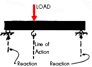 Je ne suivrais pas identiquement les termes utilisés dans le cours du MIT. Pour identifier les forces exercées par des appuis, j’utiliserai le terme forces aux appuis et non pas réactions aux appuis, ni réactions. Car les forces aux appuis ne sont pas les réactions aux charges sur la structure, contrairement à ce que suggère la figure ci-dessous: