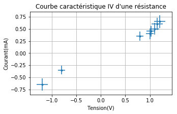 plt.title("Courbe caractéristique IV d'une résistance")